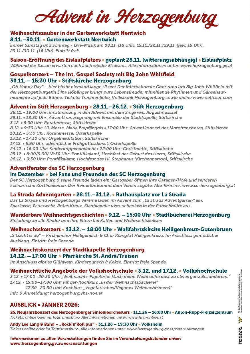 Kunst & Genuss rund um den Rathausplatz Herzogenburg. Am Rathausplatz sorgen heimische Vereine und Institutionen für das kulinarische Wohl der Gäste. Im Rathaus finden Sie zahlreiche Aussteller:innen mit Kunsthandwerk und selbstgemachten, regionalen Produkten. Auch den Kindern wird wieder einiges geboten.